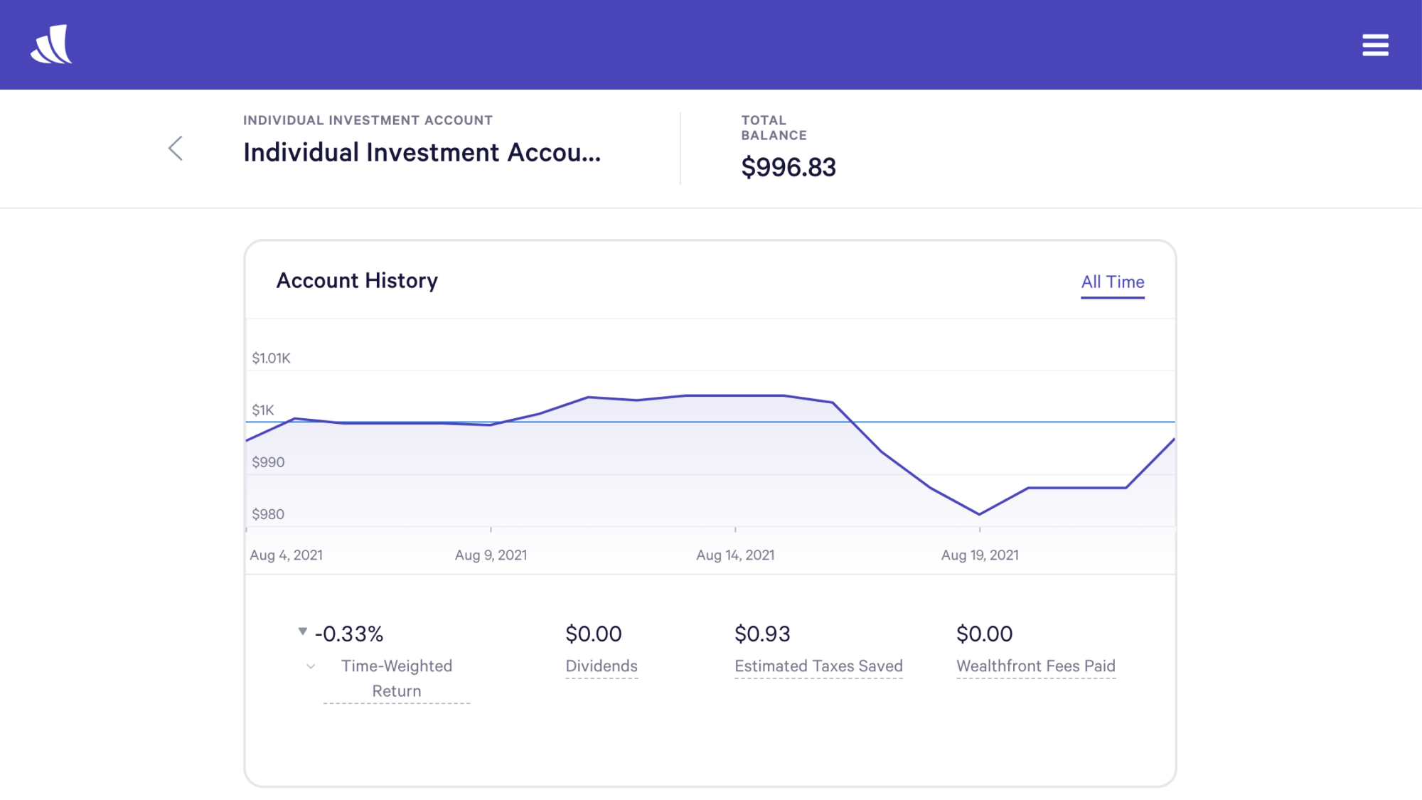 Today’s balance: $996.83 (Net returns to date: $3.17 loss)