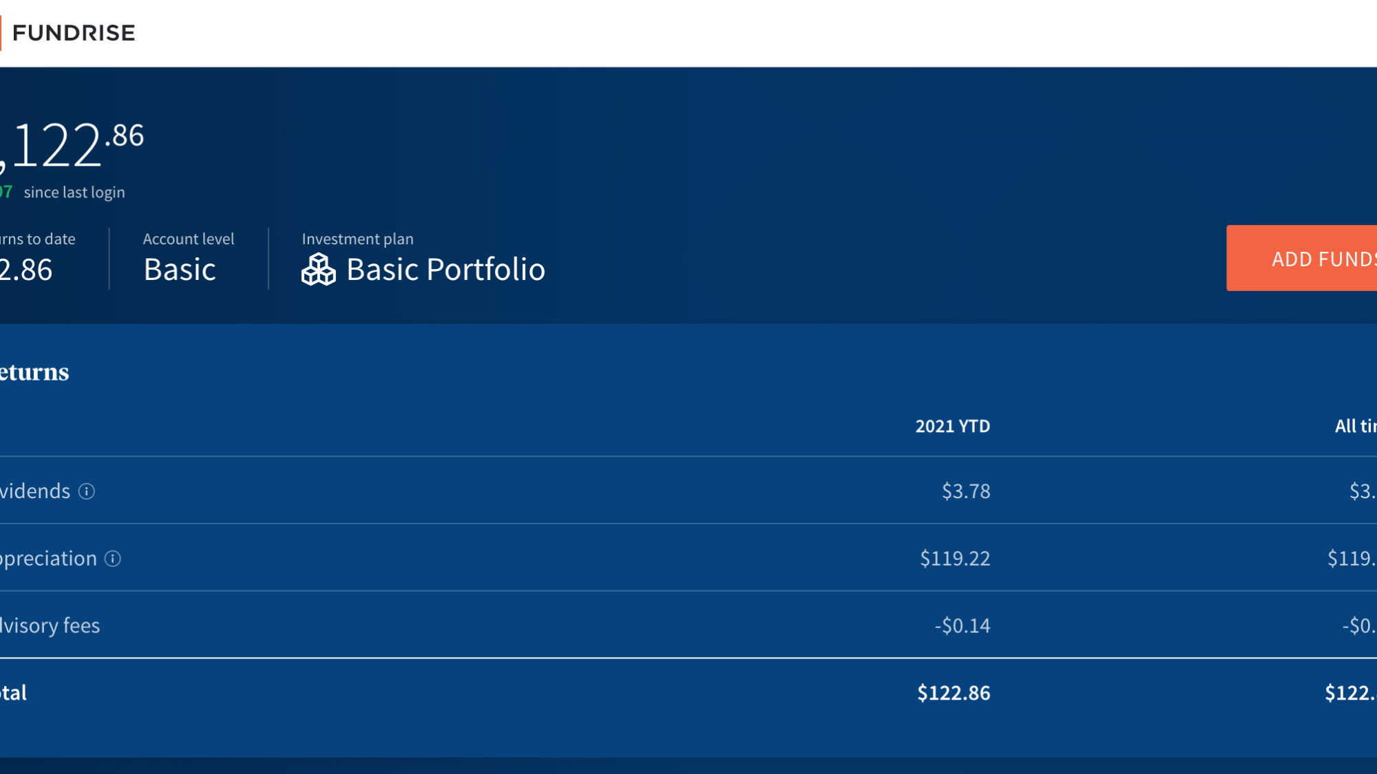 Today’s balance: $1,122.86 (Net returns to date: $122.86 gain)