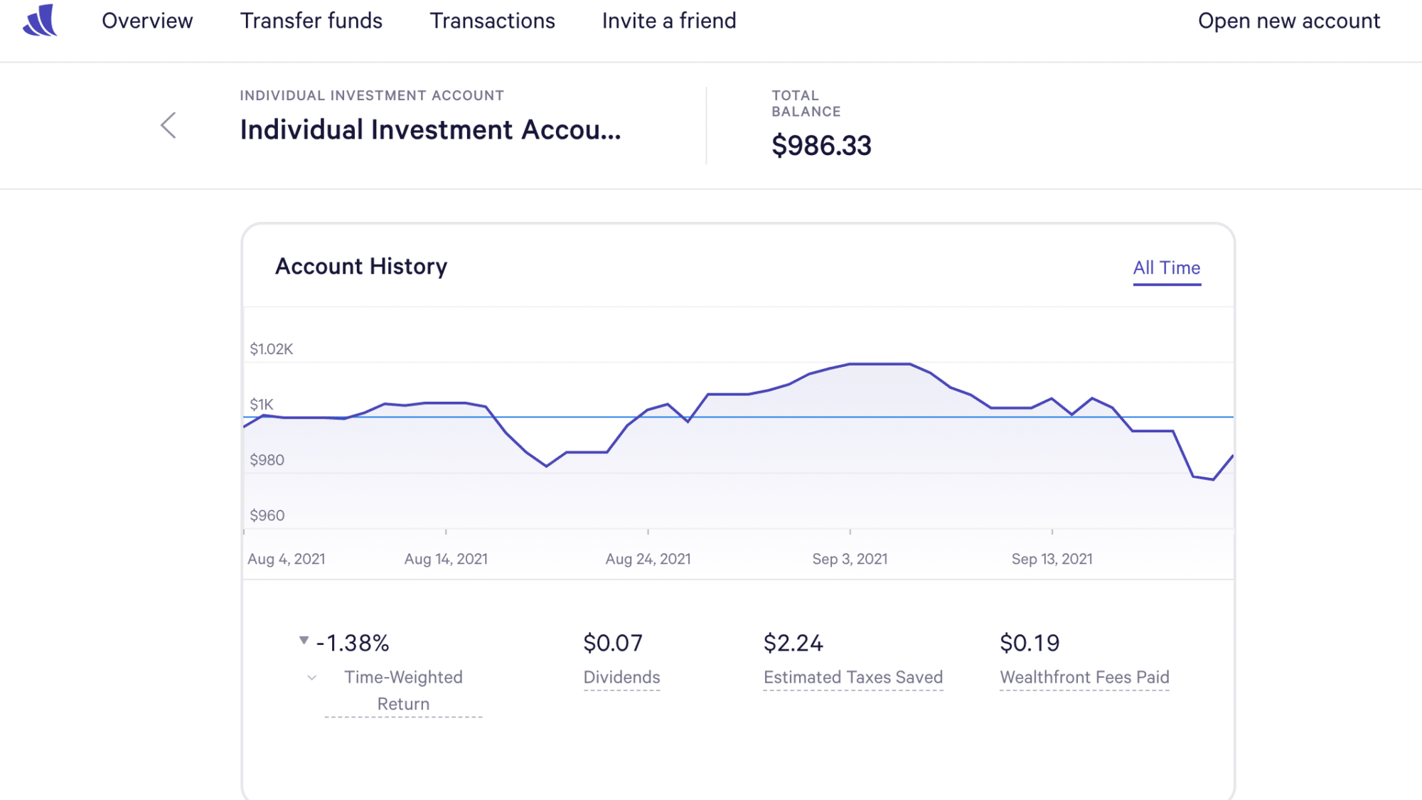 Historical info: $1000 on July 27, 2021 (initial investment)