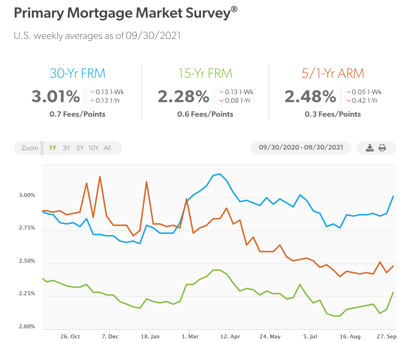 The all-time lows Mortgage rates being below 3% is starting to come to an end. According to Freddie Mac on Sept 30, 2021, Mortgage rates rose across all loans types.
