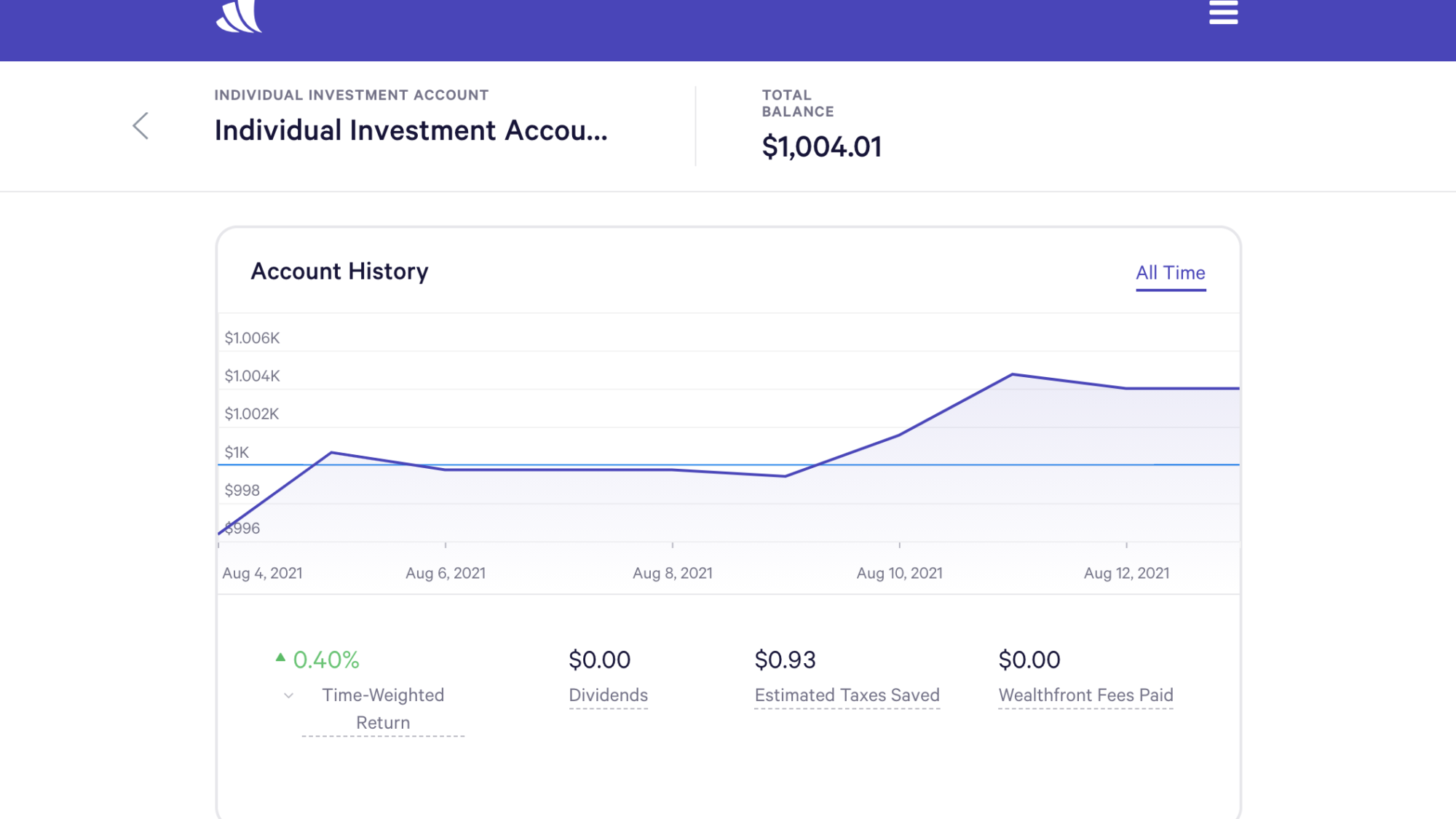 Today’s balance: $1,004.01 (Net returns to date: $4.01 increase)