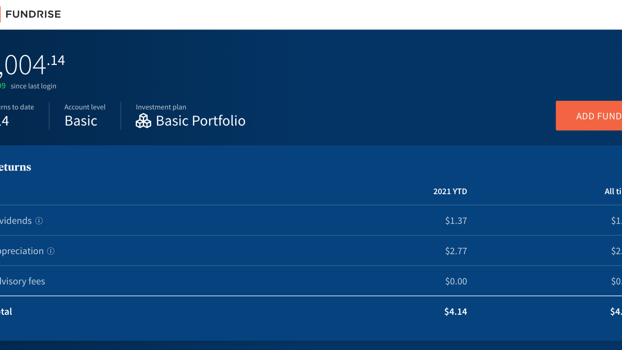 Today’s balance: $1004.14 (Net returns to date: $4.14 gain)
