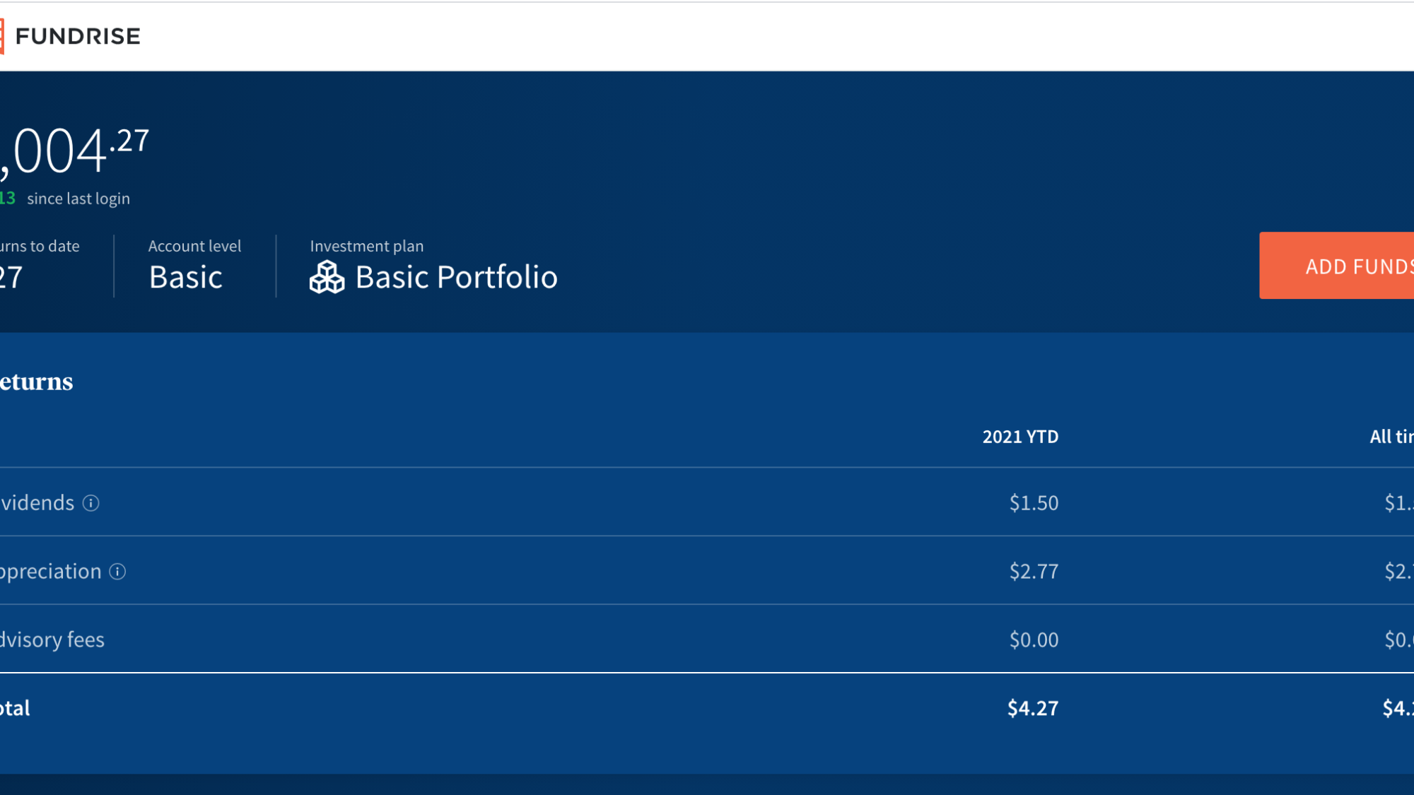 Today’s balance: $1004.27 (Net returns to date: $4.27 gain)