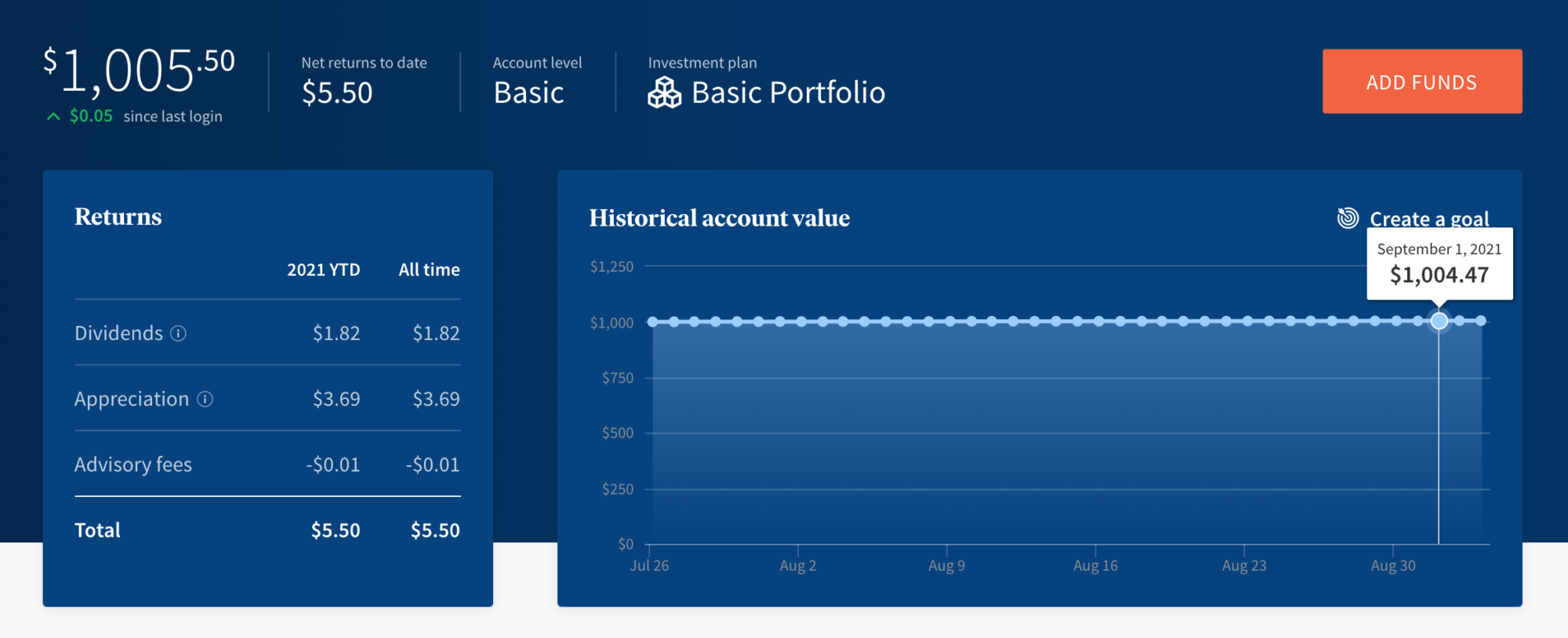 Historical info: $1000 on July 27, 2021 (initial investment)